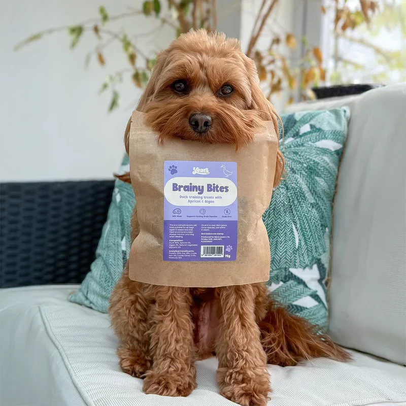 Duck Brainy Bites are a fantastic training treat that are made from 90% real duck. We then add fruits and vegetables which provide an antioxidant boost for total brain health. Measuring just 3cm our brainy bites are the ideal bitesize healthy treats, perfect for training dogs.